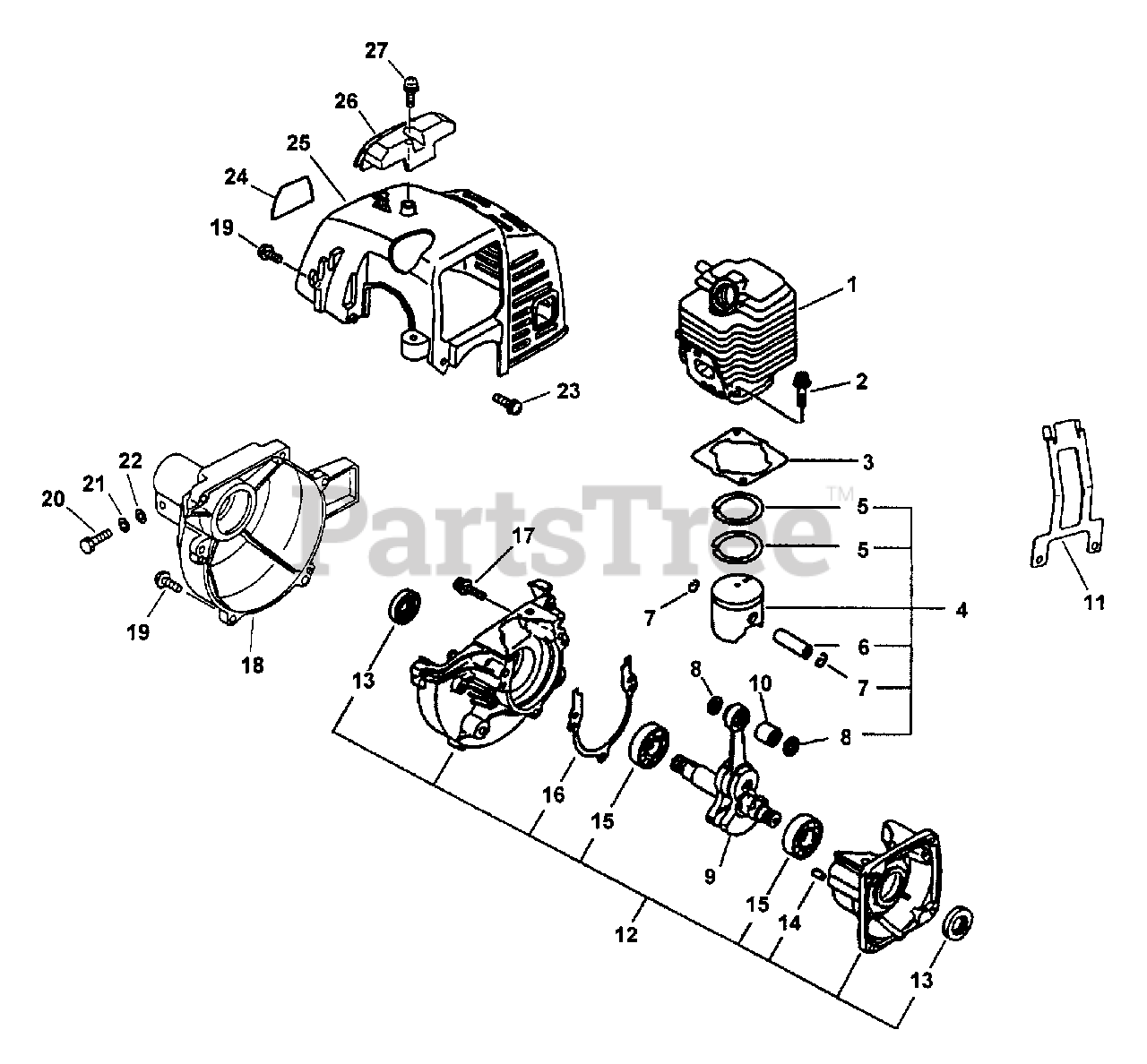 Note: CYLINDER, CRANKCASE, PISTON, CRANKSHAFT, BEARINGS & SEALS