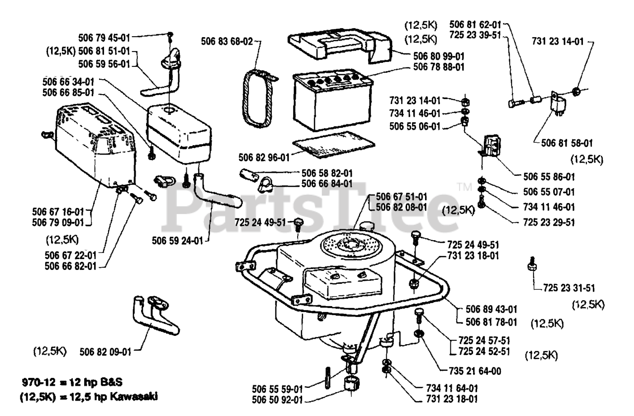 Engine Silencer & Battery Assembly Parts Diagram