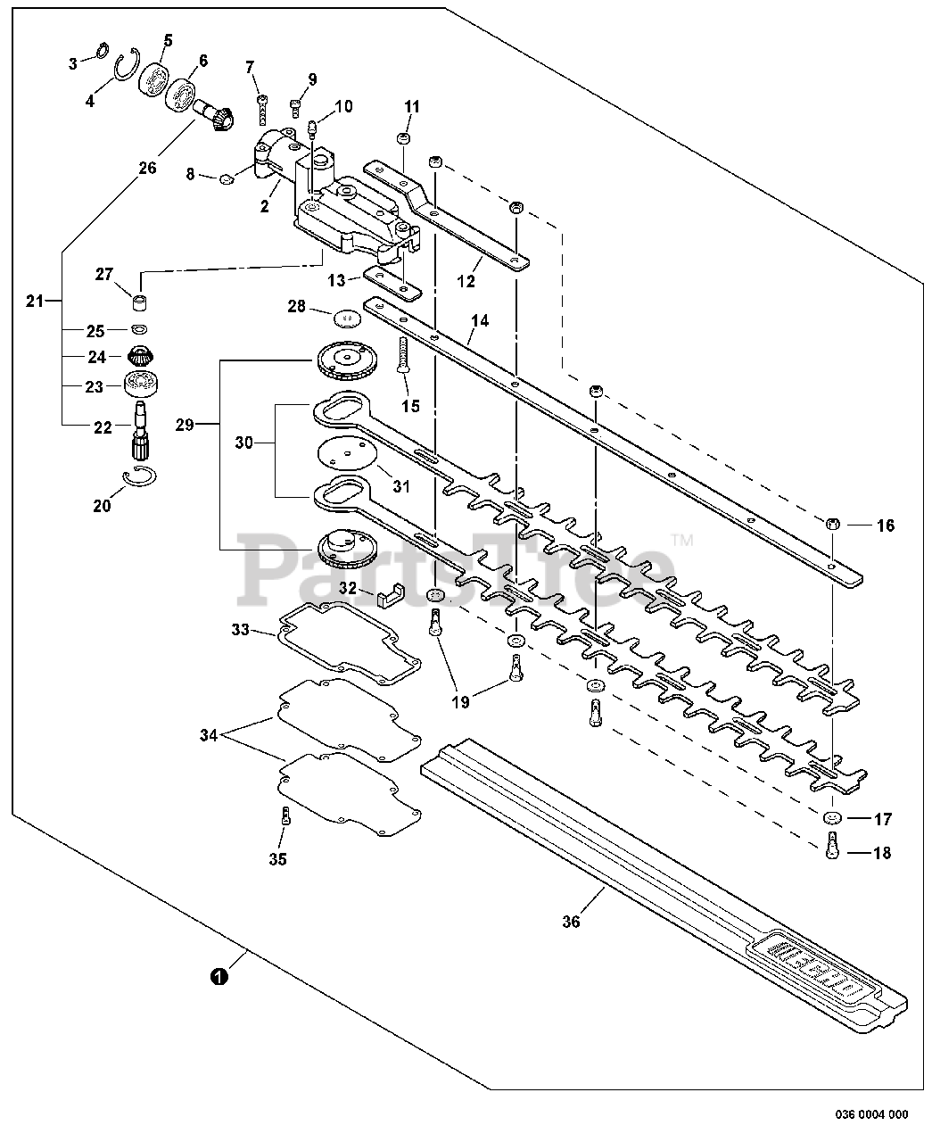 SHC-210 - Echo Shaft Hedge Trimmer (SN: 10001001 - 10999999) Gear Case, Blades S/N: 10001121 - 10999999 Parts Diagram