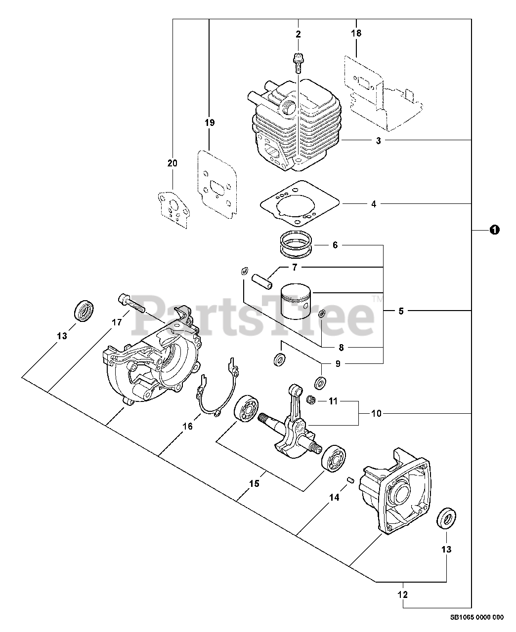 SRM-210 - Echo String Trimmer (SN: 07001001 - 07999999) Engine, Short Block -- SB1065 Parts Diagram