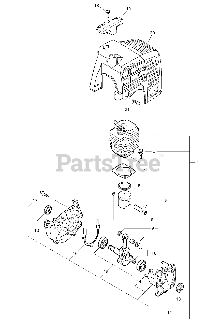 SRM-2110 - Echo String Trimmer (Type 1E) Engine, Crankcase, Cylinder Cover Parts Diagram