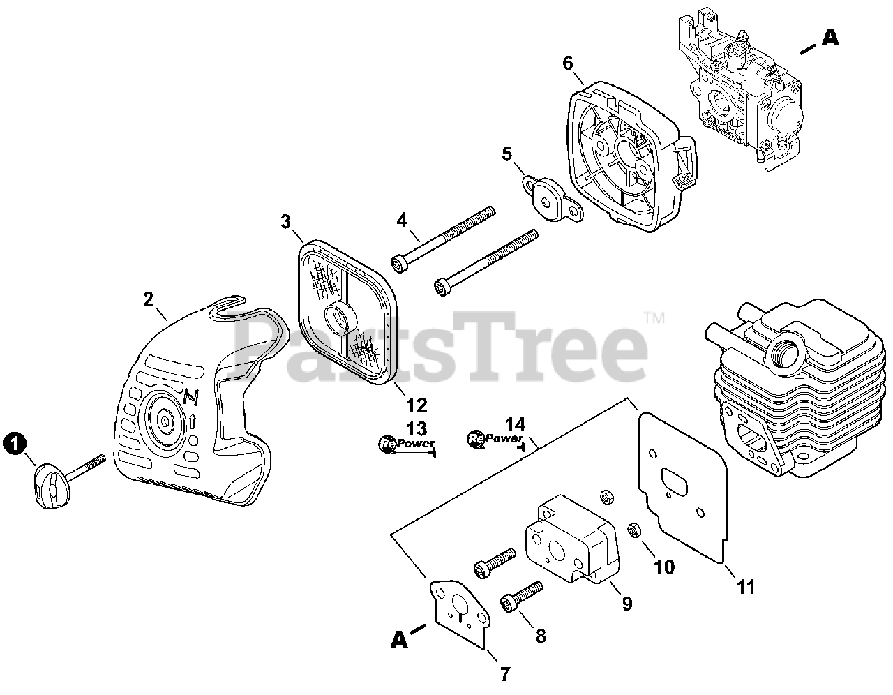 SRM-225 - Echo String Trimmer (SN: T79914001001 - T79914999999) Intake Parts Diagram