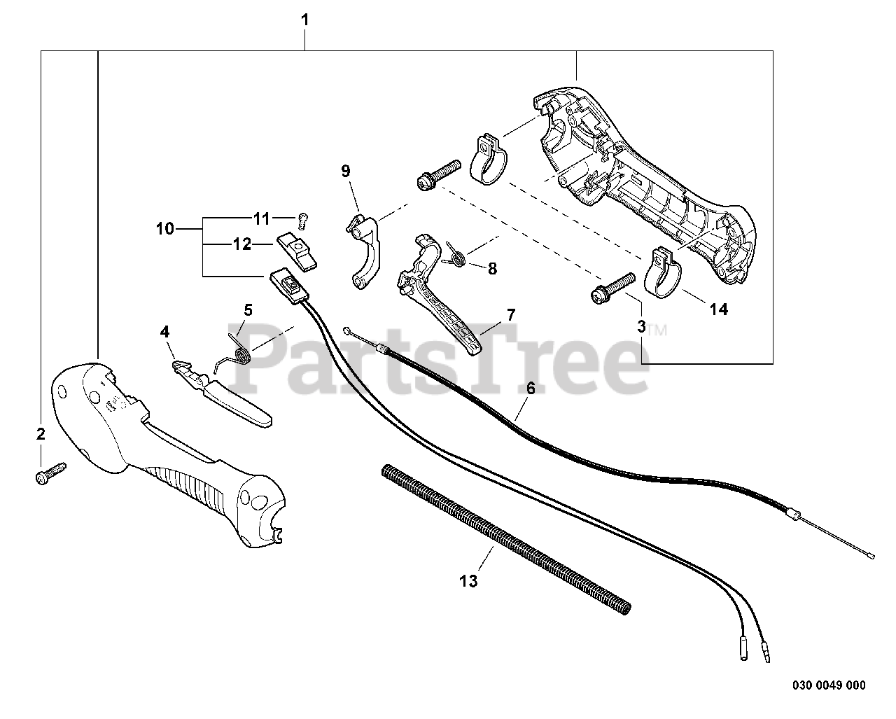 Control Handle, Throttle Cable Parts Diagram