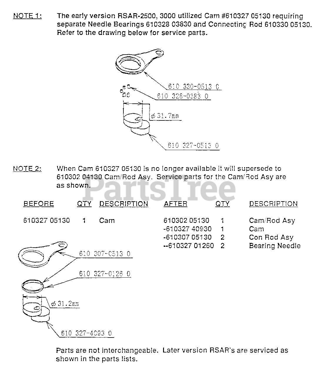 Cam, Connecting Rod & Needle Bearing Notes 1 and 2 Parts Diagram