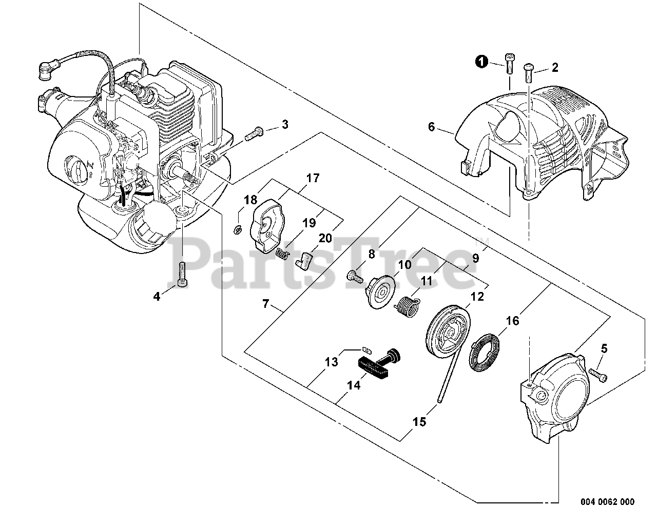 T 235 - Shindaiwa String Trimmer (SN: S95512001001 - S95512999999) Engine Cover, Starter Parts Diagram