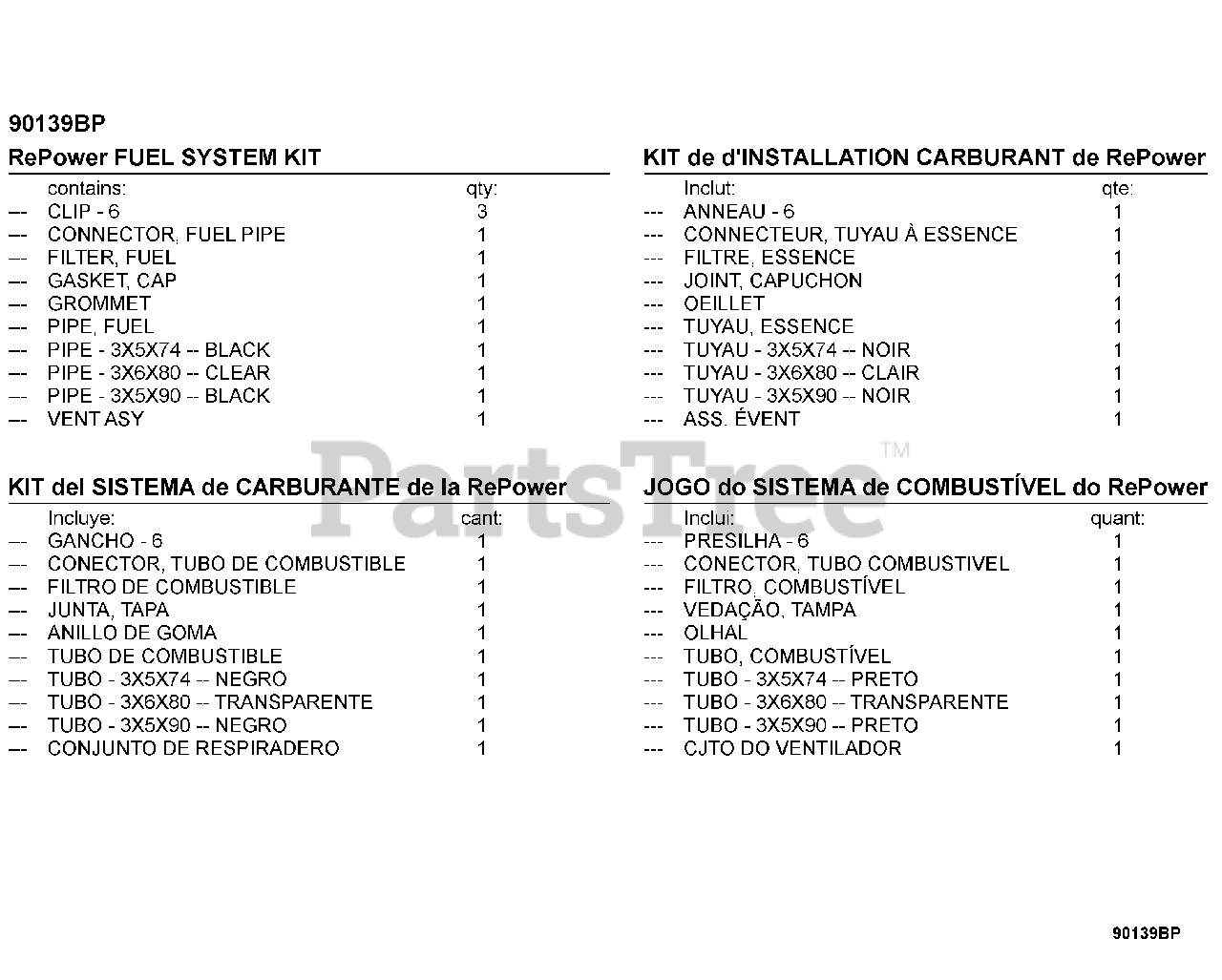 90139BP RePower FUEL SYSTEM KIT Parts Diagram