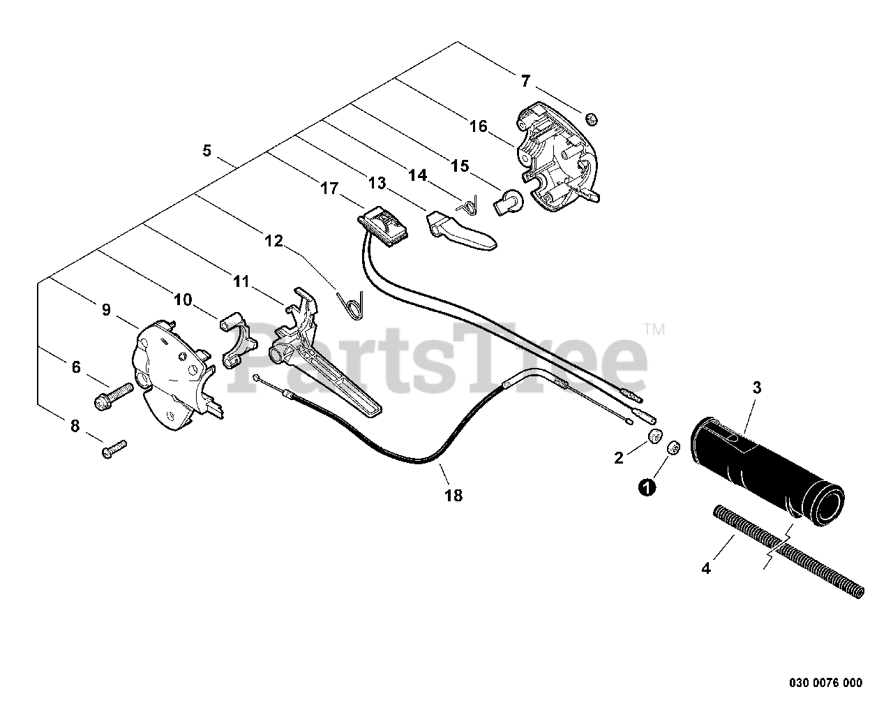 Control Handle, Throttle Cable Parts Diagram