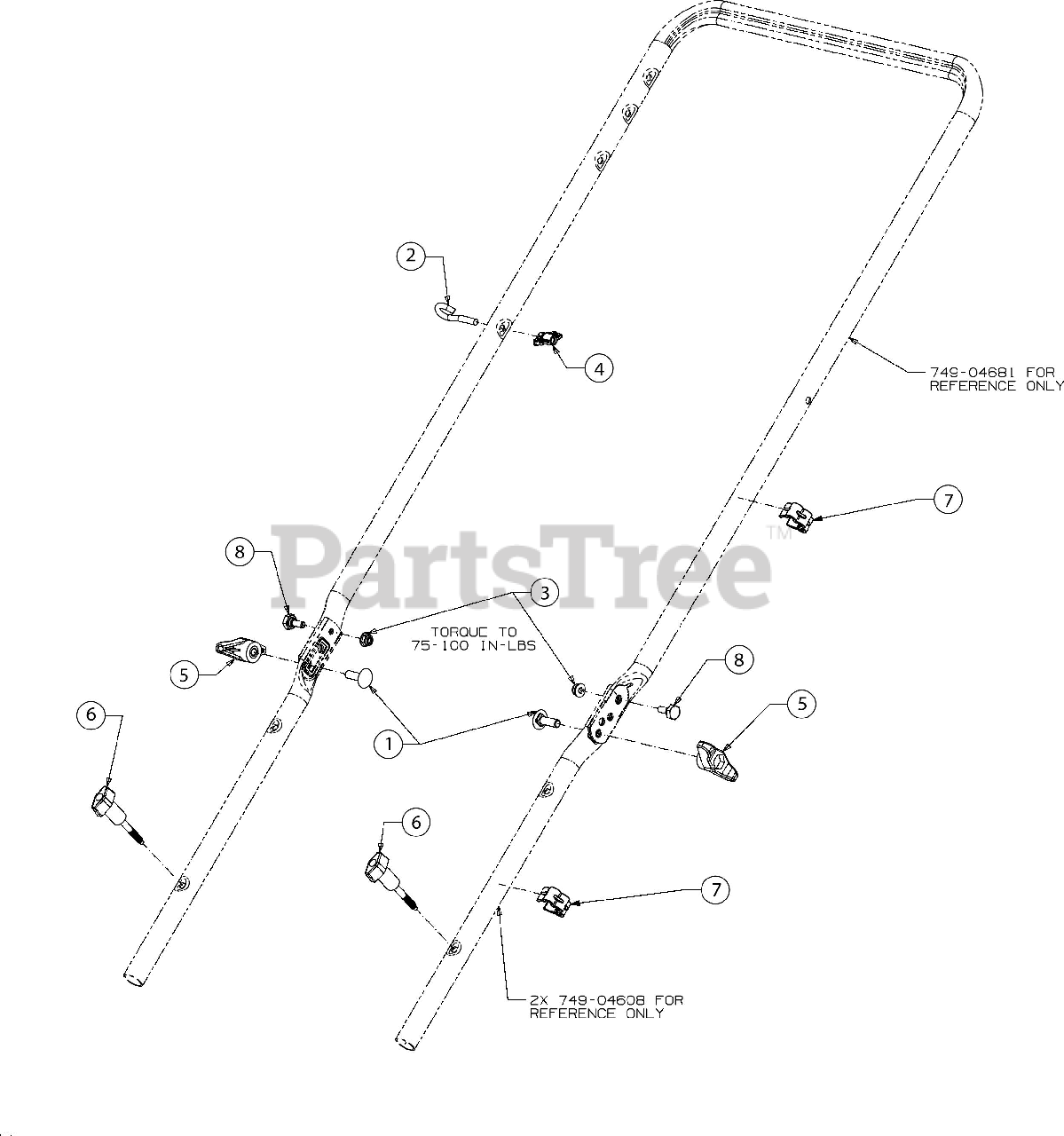 TB 370 (12ABD3A3766) - Troy-Bilt Walk-Behind Mower (2016) Handle Hardware Parts Diagram