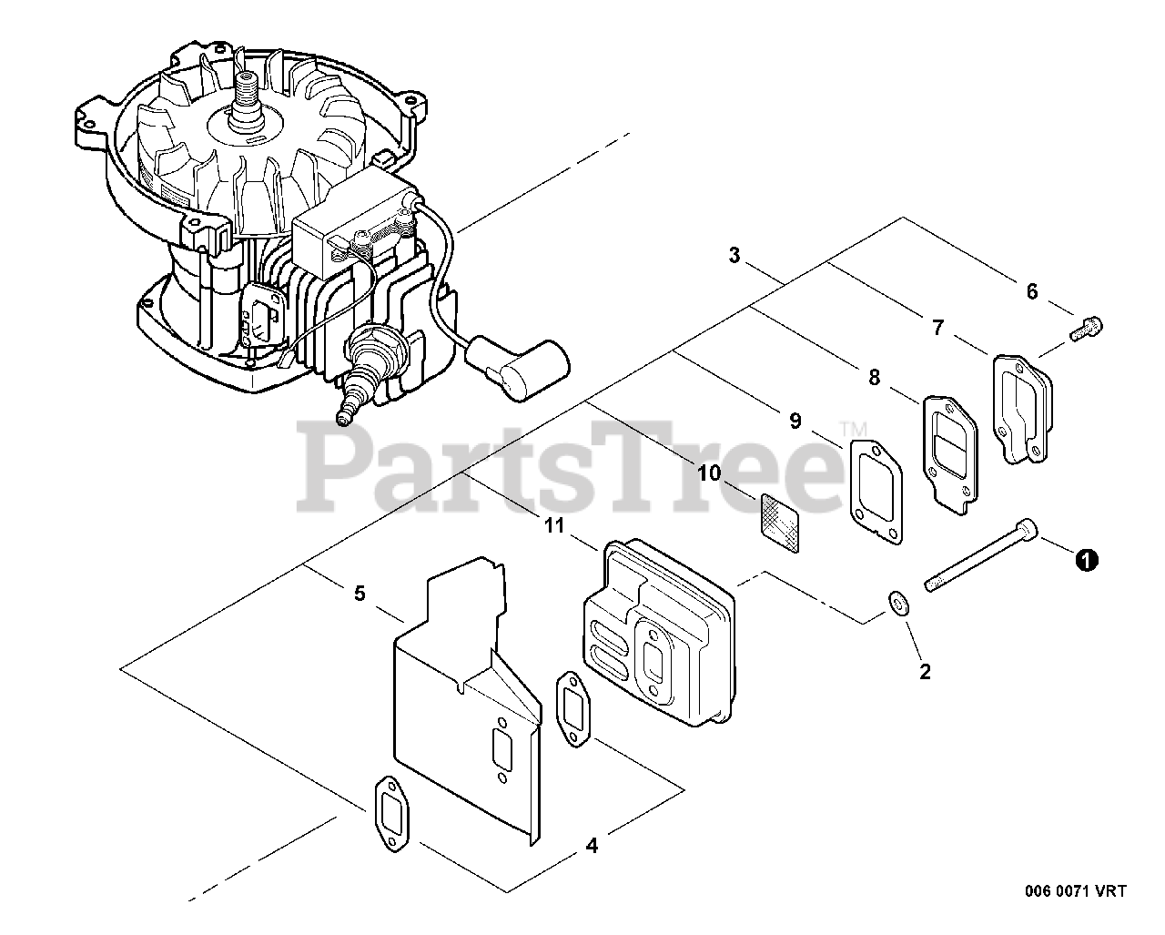 TC-210 i - Echo Tiller Cultivator (SN: 07001001 - 07999999) Exhaust Parts Diagram