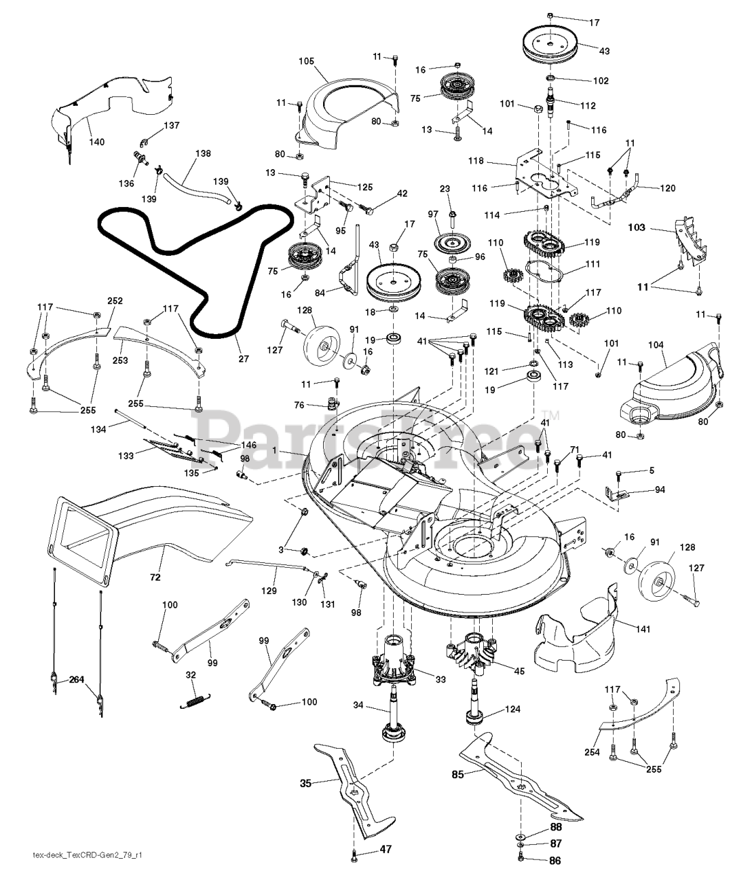 Note: Mandrel Assembly Tall (Includes Housing (key 33) Shaft Assembly (key 34) and Bearing Only (key 19)- Pulley /Nut /Washer and Blade Bolt /Washers Not Included)