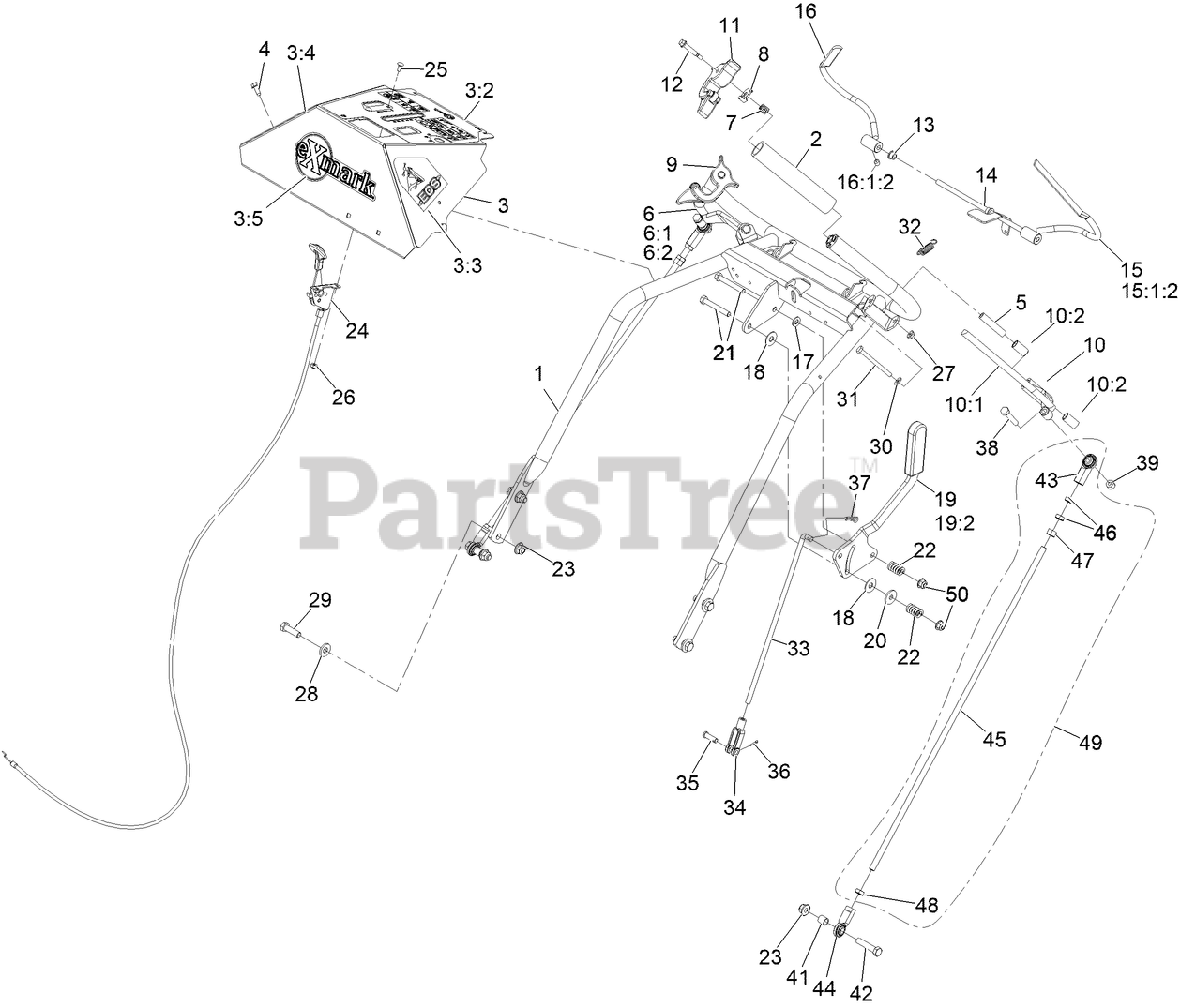 TTX650EKC604N0 - Exmark 60" Turf Tracer X-Series Walk-Behind Mower, Kohler (SN: 416150475 - 417930745) (Rev A) (2024) Handle Assembly Parts Diagram