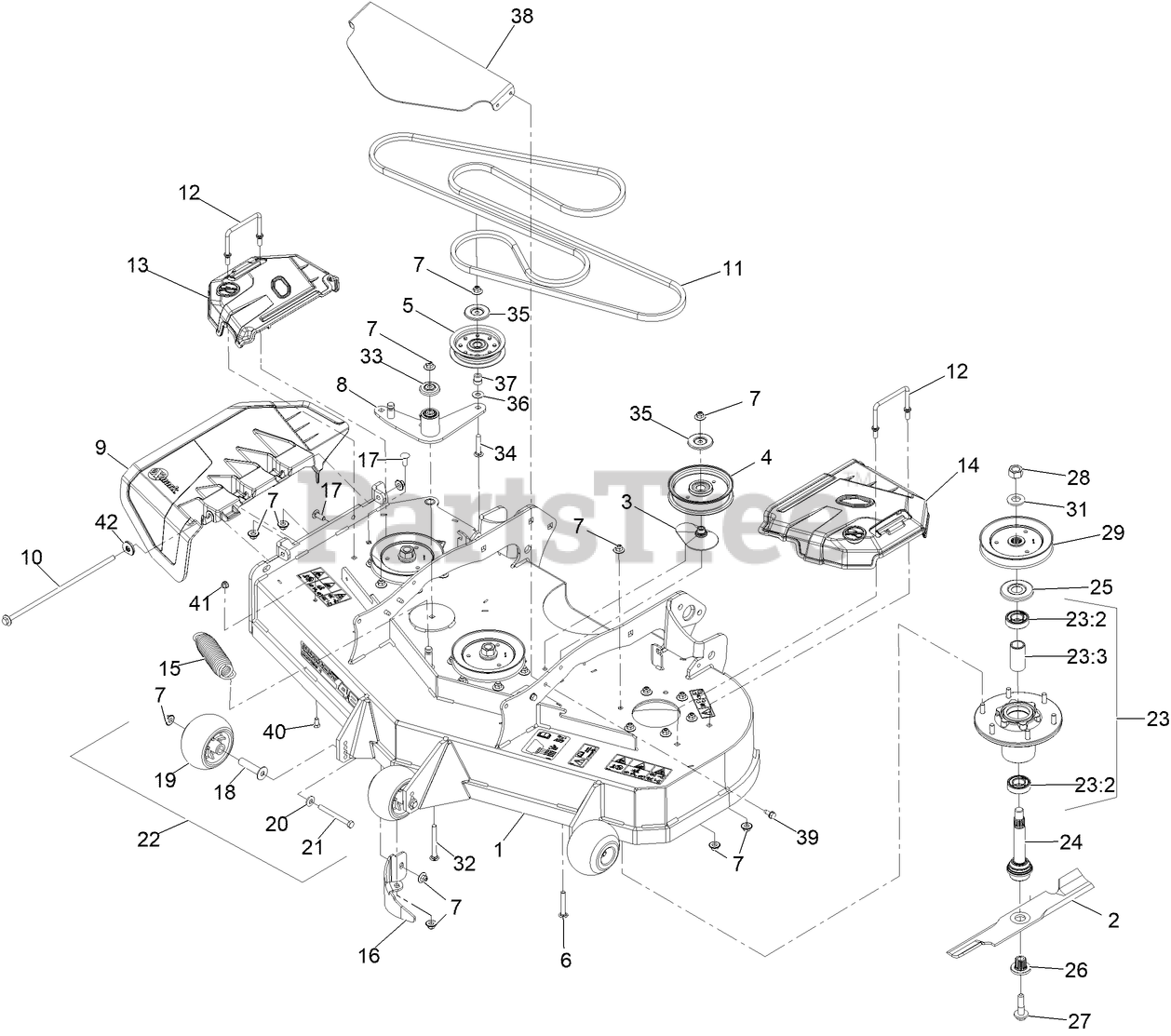 Note: Requires installation of mulch kit for proper mulching. See your Exmark dealer for details