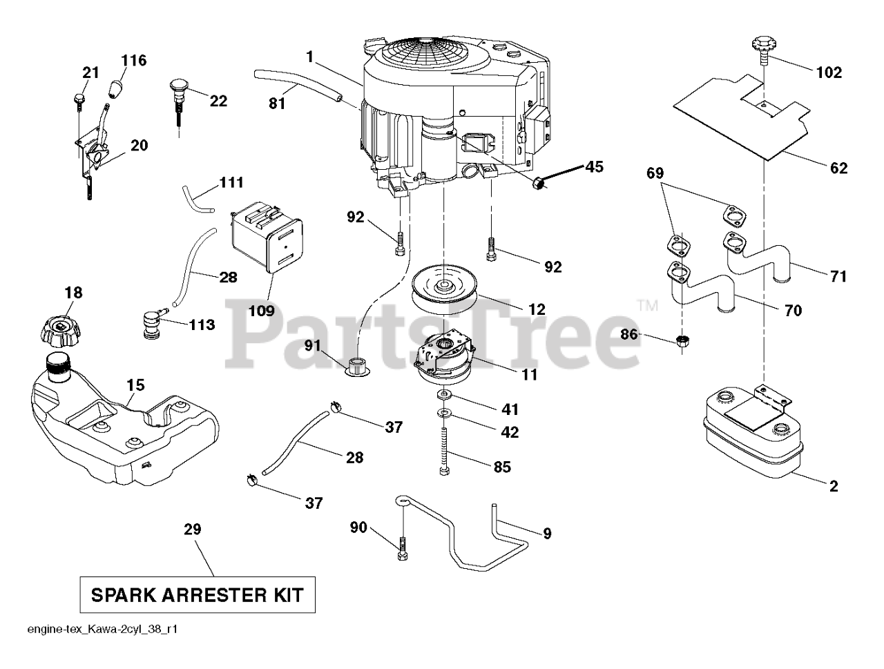 Note: ENGINE KAWA MODEL NO FR600V-AS11 (581477001)