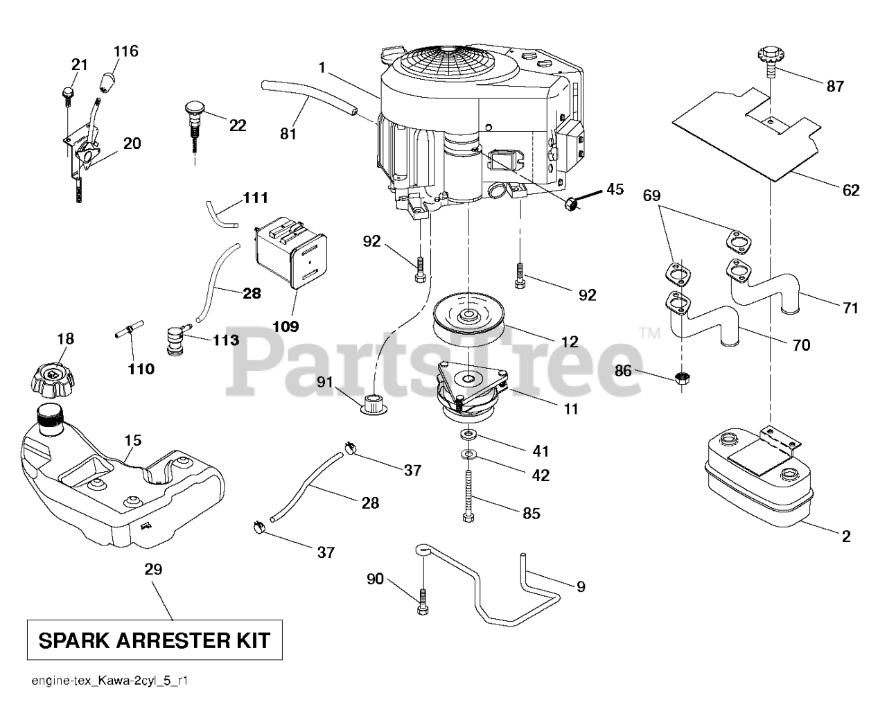 Note: ENGINE KAWA MODEL NO FR691-ES15 (581557501)