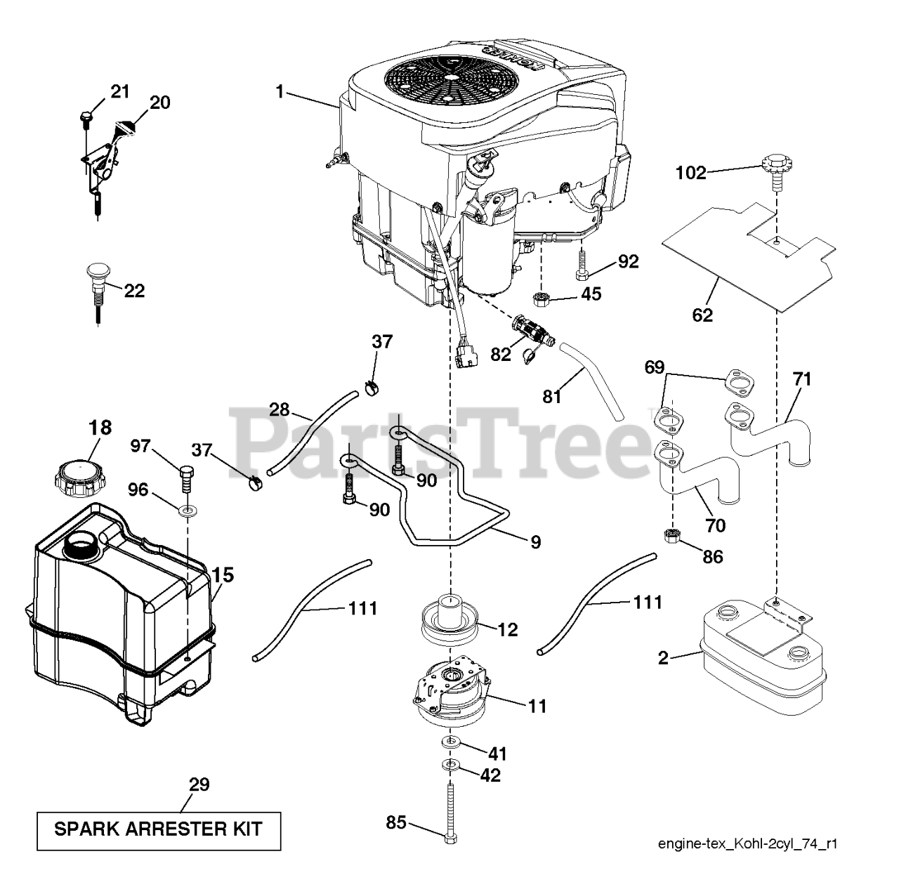 Note: ENGINE KOHL MODEL NO. KT735-3011 (585453201)