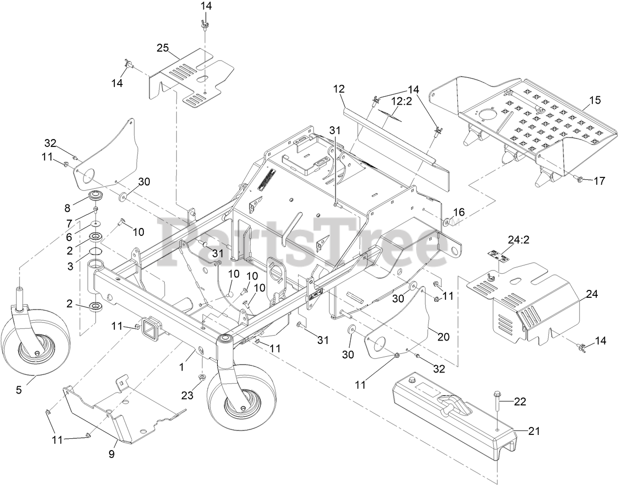 ZA3624 - Exmark 24" Z-Aerate Stand-On Aerator, Kohler CH440 (SN: 416150475 - 417930745) (Rev A) (2024) Main Frame Assembly Parts Diagram