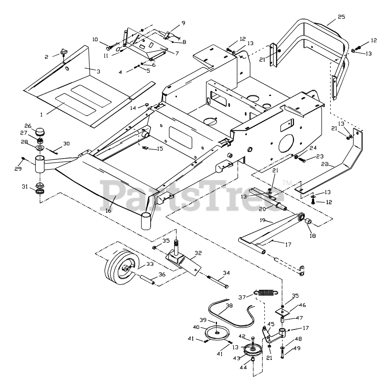 ZTH 5221 KAA (968999159) - Husqvarna 52" Zero-Turn Mower (2000-12) Main Frame Parts Diagram
