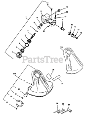 The Bracket, sometimes referred to as a brace or mount, is often critical to supporting the weight of another component or strengthening an attachment point. Common uses are the handle bracket, idler bracket, or anti-scalp roller bracket. If subjected to substantial torque, many brackets are designed to break in order to protect other components. When replacing a bracket, confirm if you need the Left-Hand (LH) or Right-Hand (RH) bracket as they often differ. Left or right is based on the operator position.