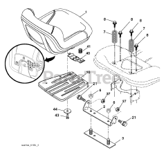 Seats on riding equipment may split and wear over time and require replacement. The OEM/Manufacturer may provide high, medium, and low back options. The seat lever can be used to unmount the seat from the seat mounting bracket so the back height can be further adjusted. When removing, unlock the seat from its fasteners, and use the lever to slide the seat off of its tracks. From there, springs for the seat can be replaced and repaired, as well as the seat itself.