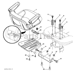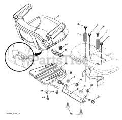 Seats on riding equipment may split and wear over time and require replacement. The OEM/Manufacturer may provide high, medium, and low back options. The seat lever can be used to unmount the seat from the seat mounting bracket so the back height can be further adjusted. When removing, unlock the seat from its fasteners, and use the lever to slide the seat off of its tracks. From there, springs for the seat can be replaced and repaired, as well as the seat itself.
