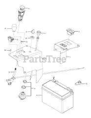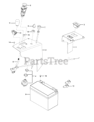 The most common types of Battery used in outdoor power equipment are acid-based batteries primarily used to support electric starter systems. Electric starter batteries are normally sold "dry" (meaning without battery acid) so that they may be safely shipped to the end customer. Before installation, a dry battery must be filled with acid, usually at a local automotive store. Note the position of the positive and negative terminals before you remove the old battery as that can differ on some equipment.