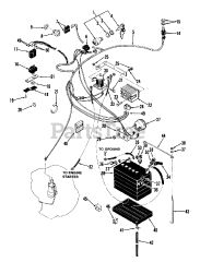 The most common types of Battery used in outdoor power equipment are acid-based batteries primarily used to support electric starter systems. Electric starter batteries are normally sold "dry" (meaning without battery acid) so that they may be safely shipped to the end customer. Before installation, a dry battery must be filled with acid, usually at a local automotive store. Note the position of the positive and negative terminals before you remove the old battery as that can differ on some equipment.