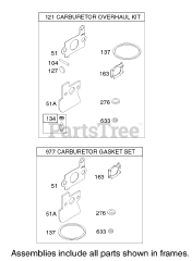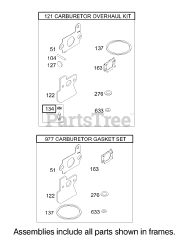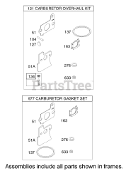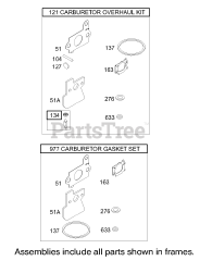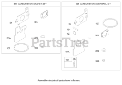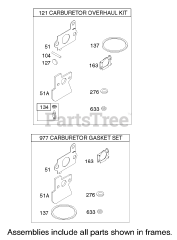Carburetor Overhaul Kit and Gasket Set Assemblies Briggs and Stratton 122672-0192-E1