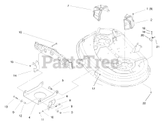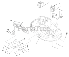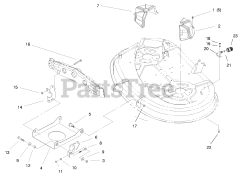The Bracket, sometimes referred to as a brace or mount, is often critical to supporting the weight of another component or strengthening an attachment point. Common uses are the handle bracket, idler bracket, or anti-scalp roller bracket. If subjected to substantial torque, many brackets are designed to break in order to protect other components. When replacing a bracket, confirm if you need the Left-Hand (LH) or Right-Hand (RH) bracket as they often differ. Left or right is based on the operator position.