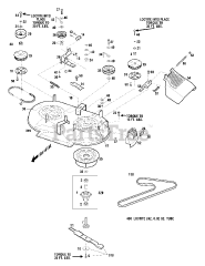 The Bracket, sometimes referred to as a brace or mount, is often critical to supporting the weight of another component or strengthening an attachment point. Common uses are the handle bracket, idler bracket, or anti-scalp roller bracket. If subjected to substantial torque, many brackets are designed to break in order to protect other components. When replacing a bracket, confirm if you need the Left-Hand (LH) or Right-Hand (RH) bracket as they often differ. Left or right is based on the operator position.